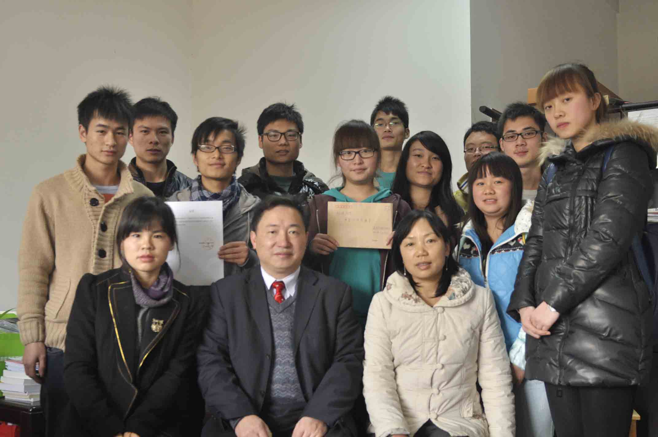 我们将爱进行到底,传递一份温暖。2012年12月5日下午,一场爱心接力活动在八教206正式举行,教育学院党委副书记王伟清、胡 银华老师、尹琼芳老师为代表和湖南科技大学蓝翔助学协会代表谭泽威和 柳荣杰参与,并见证了此次交接仪式。