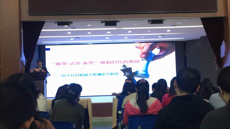 2017年10月31日上午,我院谭建平教授受邀赴株洲市八达小学做了题为《“顺势 适势 乘势”做新时代的教师》的专题报告,并结合学习十九大报告体会对一线学校和教师的发展与八达小学教师进行了交流。报告会由株洲市八达小学校长赵腾达主持。