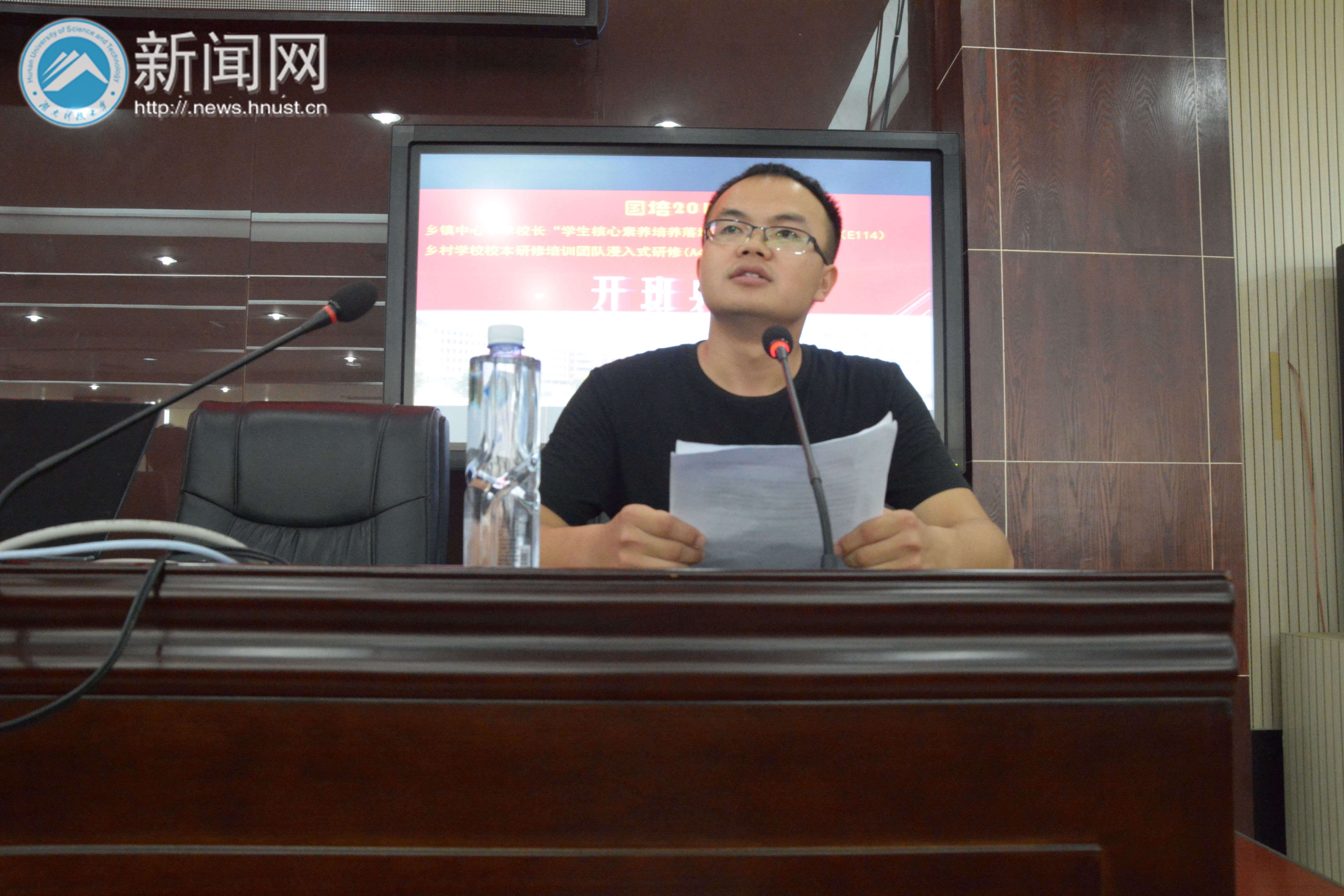浏阳市乡镇小学校长刘洋作为学员代表发言。他首先感谢学校与市教育局提供的这次培训机会,表示将好好把握这次高规格、高层次的学习机会,真正把所学带回家;同时代表学员表态,在培训期间一定遵守学习纪律、以敬业务实的精神开拓进取,积极转变角色,以一名普通求知者的身份融入更优秀的集体,虚心向专家学习,向其他优秀学员学习。积极按照课程要求适应教学内容,努力克服困难,促进自身不断进步。