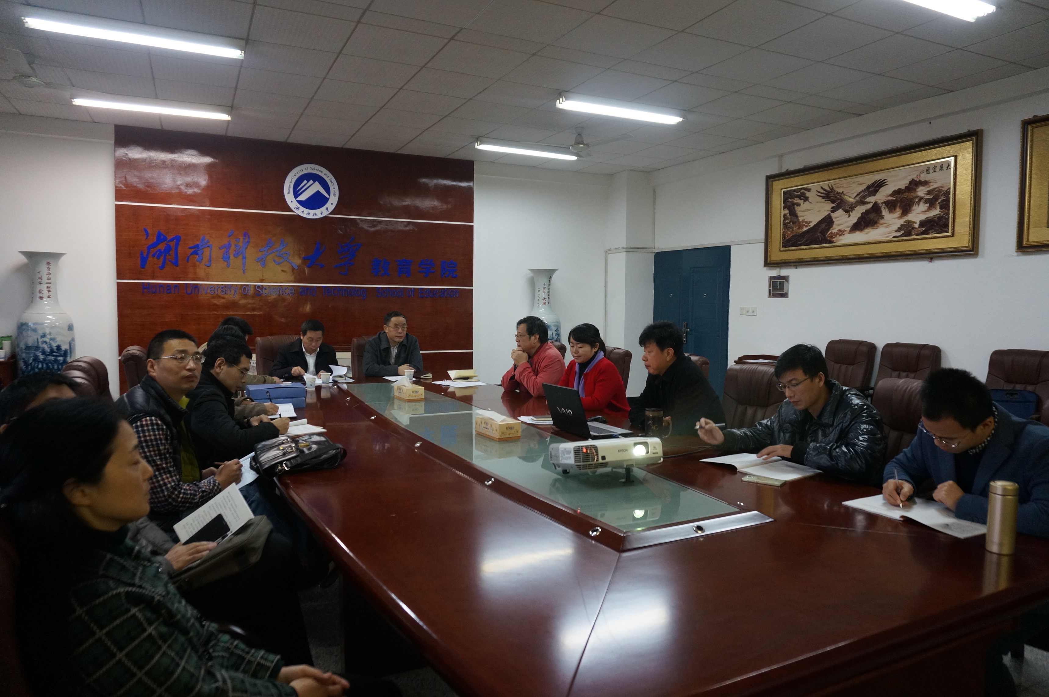 11月18日下午,教育学院2015年度执行党风廉政建设责任制报告会在第八教学楼203会议室顺利召开。会议由教育学院党委书记谭建平教授主持,由校党委组织部刘龙洲教授等人组成的工作组来我院检查考核,学院科级及以上干部、党委委员、各支部书记参加了此次会议。