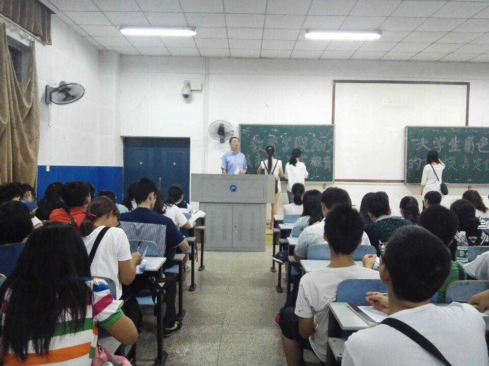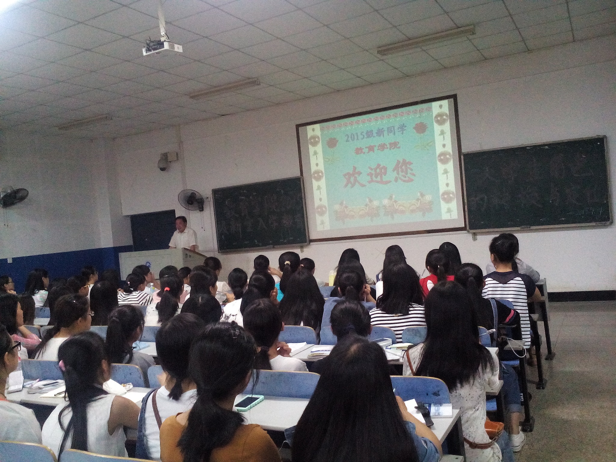 2015年9月14日,由教育学院团委学生会职业规划部主办的教育学院新生入学教育讲座在八教3-3拉开序幕,参与本次讲座的有教育学院党委副书记王伟清、学工办李涛老师、尹琼芳老师以及部分团委学生会的干部,教育学院2015级全体新生聆听了本次讲座。王伟清副书记主讲本次讲座。