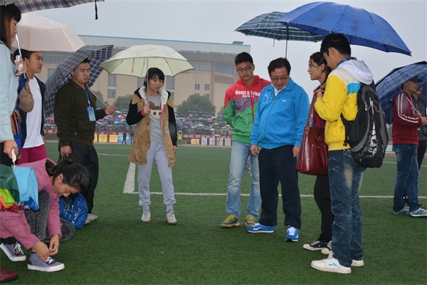 余后各院代表的方阵队出场,站成一种铁的纪律,后方党委副书记王伟清冒雨亲切慰问方阵队队员,整理衣领,鼓励并友善谈话:“教育学院中有我们的骄傲,这次分数超出预期但在意料之中,好苗子要多训练,前路会更好。”