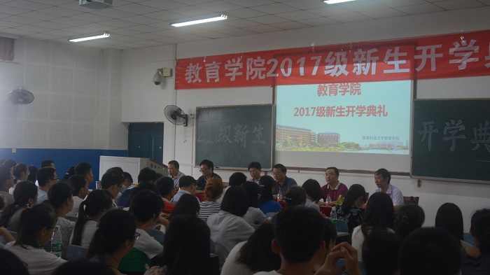 教育学院院长李海萍、党委书记李炳煌、党委副书记刘辉亚,辅导员、教育学院各系主任、新生班主任、助理班主任,以及2017级全体新生参与了本次开学典礼,典礼由李炳煌书记主持。