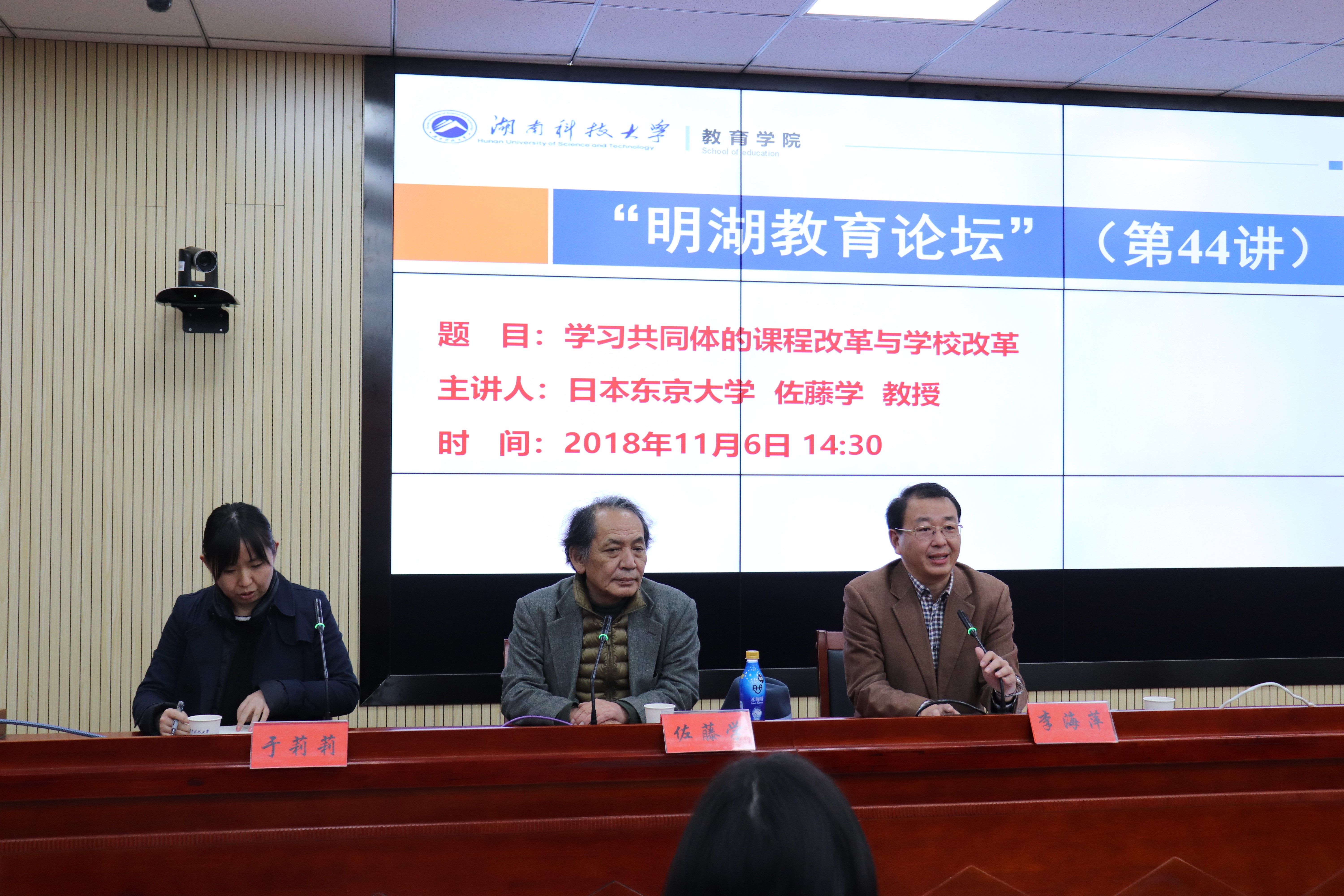 2018年11月6日下午,日本东京大学佐藤学教授做客“明湖教育论坛”(第44讲),为我院师生带来题为“学习共同体的课程改革与学校改革”的学术报告。报告会由教育学院院长李海萍教授主持。