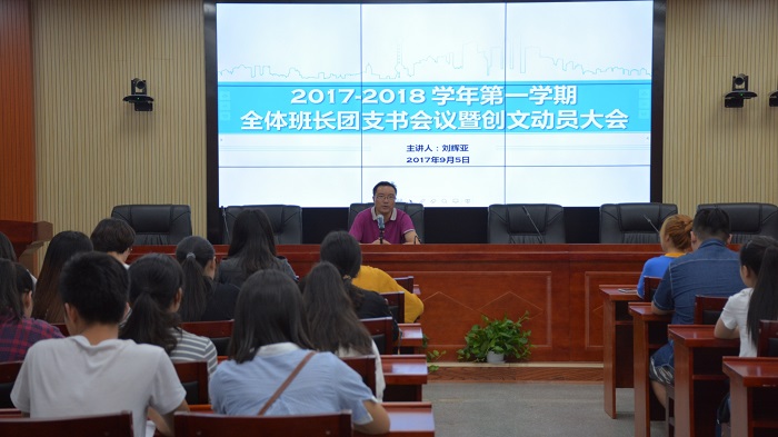 为使班级干部能更好的熟悉自身职责,进一步提高自身素质和综合能力,以及大力宣传创文工作。教育学院于9月5日在八教304隆重举办了2017-2018学年第一学期全体班长团支书会议暨创文动员大会。教育学院14、15、16级全体班长团支书参加了此次培训。此次大会由教育学院副书记刘辉亚主持。