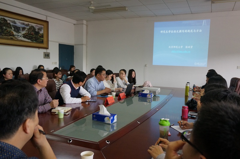 4月7日下午,长江学者特聘教授、北京师范大学教育学部博士生导师张斌贤教授莅临我院“明湖教育论坛”,在八教203会议室为师生带来了题为《研究生学位论文撰写的规范和方法》的学术报告。教育学院院长李海萍、副院长周险峰、党委副书记王伟清及部分师生代表到场聆听。报告会由校纪委书记刘宇文主持。