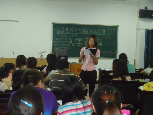 2011级的硕士研究生新生接待工作刚刚结束,我院的研究生新生入学教育工作就有条不紊地展开了。9月2日下午三点半在北校区第八教学楼408新生入学教育活动之新生见面会如期举行。教育学院研究生秘书刘健华老师、学工办研究生辅导员练素华老师、院研究生会副主席王江南以及全体新生参加了此次大会,大会由刘健华老师和练素华老师共同主持。