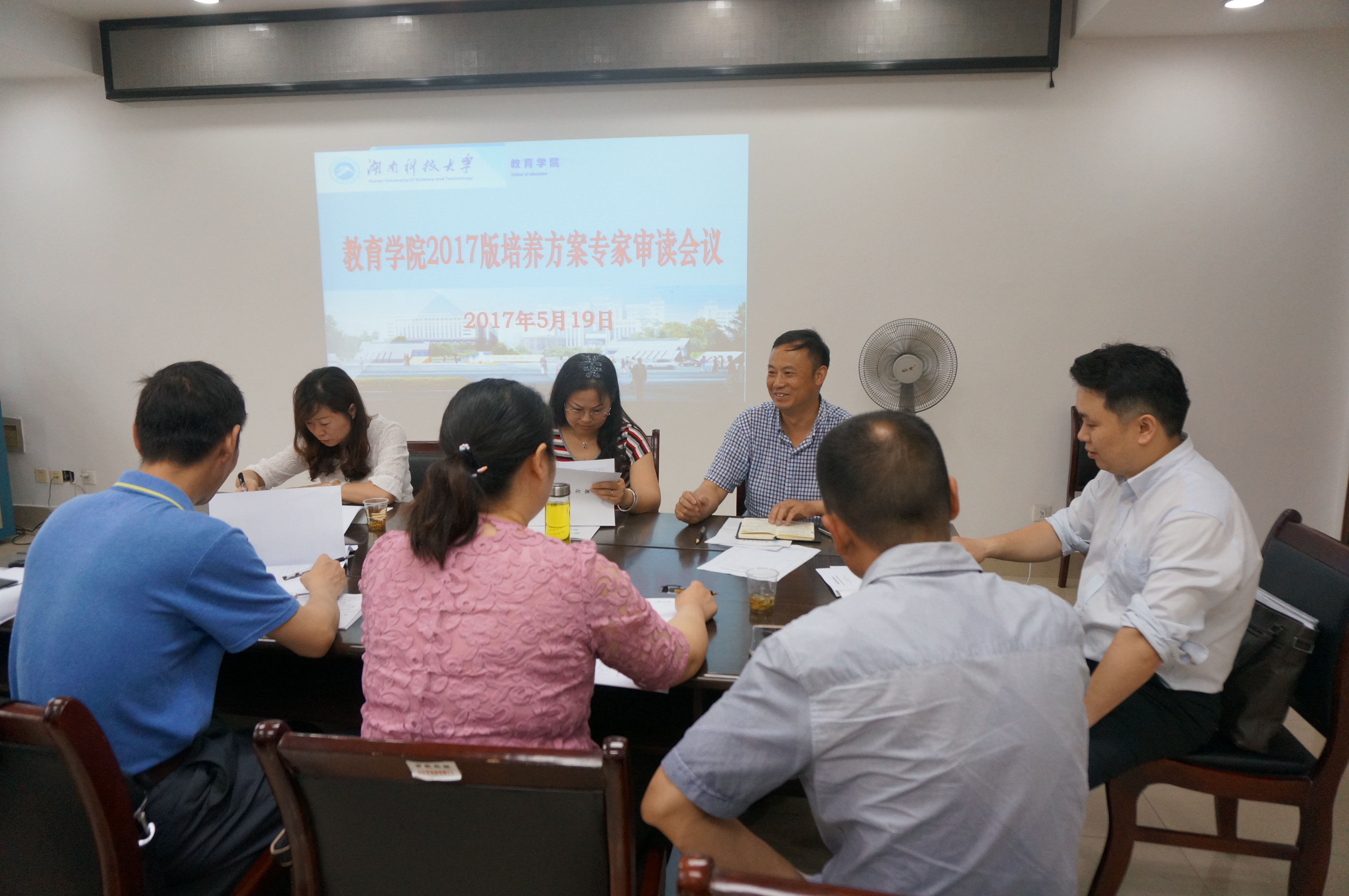5月19日上午,教育学院组织教育学、小学教育和教育技术专业系主任赴湘潭市教育局,邀请校外专家对我院2017版本科人才培养方案进行审读,会议由教育学院教学副院长谭千保主持。湘潭市教育技术研究室副主任翁可立、湘潭市教育科学规划办副主任罗大红和湘潭市湘钢三校副校长罗光辉对我院本科人才培养方案提出了意见和建议。