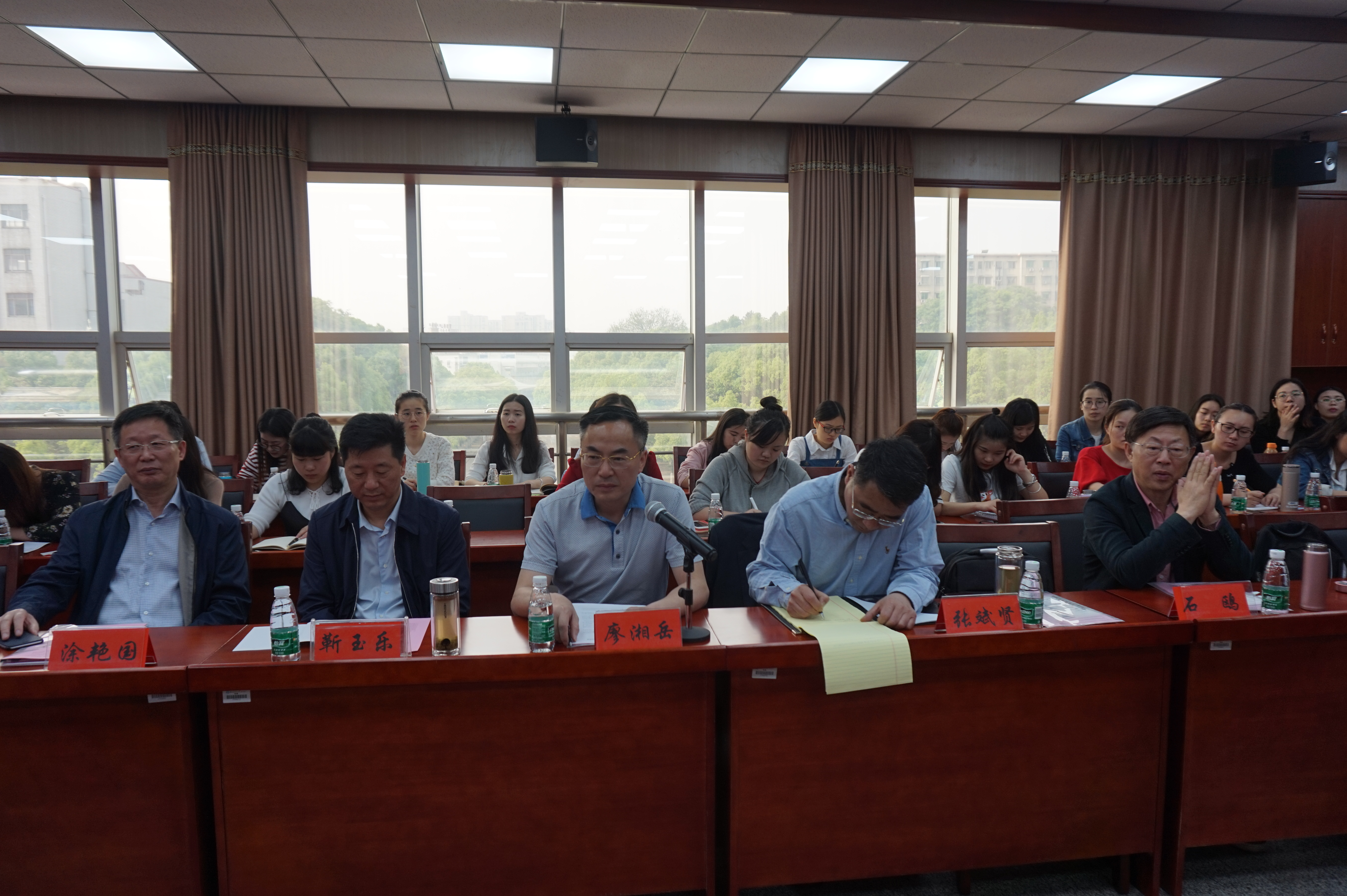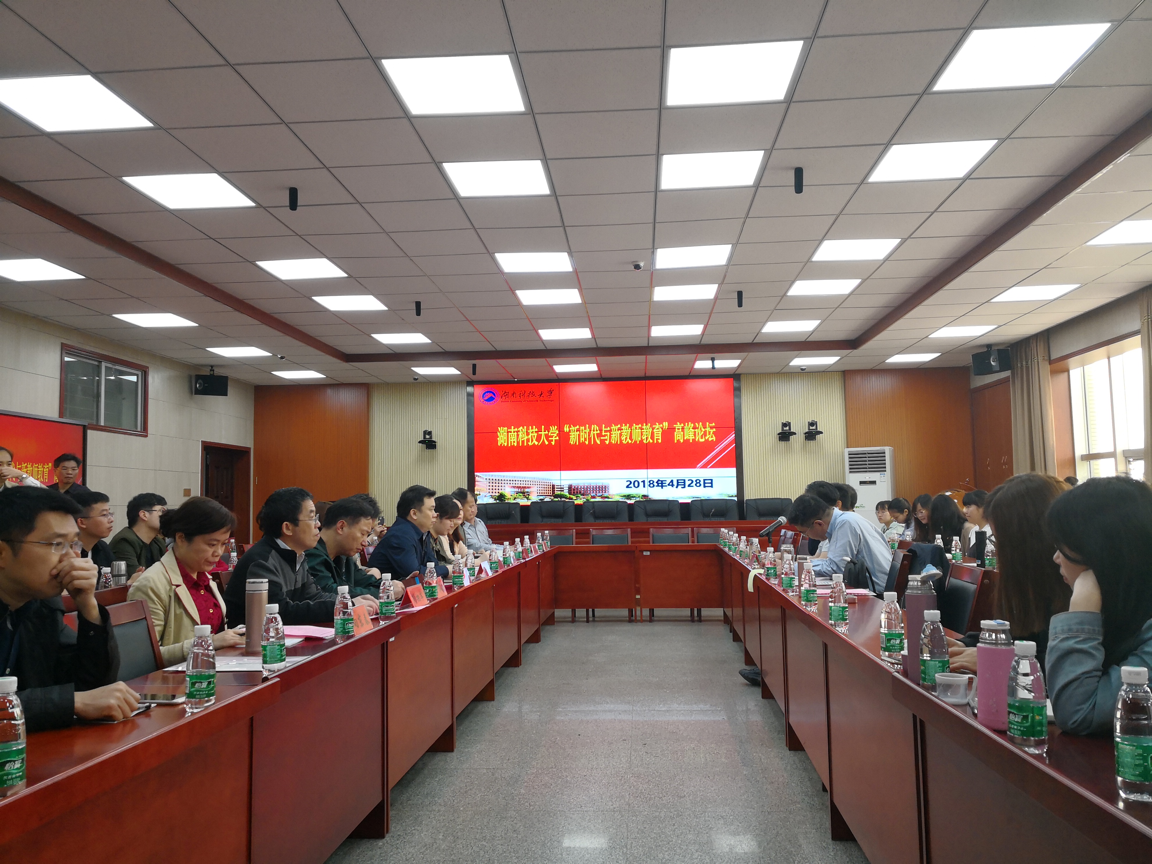 4月28日上午,为深入贯彻落实党的十九大精神,推动教师教育改革发展,造就高素质专业化创新型教师队伍,湖南科技大学“新时代与新教师教育”高峰论坛在教育学院308学术报告厅隆重举行。西南大学副校长、国务院学科评议组成员靳玉乐,全国教育专业学位教育指导委员会秘书长、“长江学者”特聘教授、北京师范大学教育学部张斌贤,全国教育学专业教育指导委员会委员、国家教学名师、首都师范大学特聘教授石鸥,全国教育专业学位教育指导委员会委员、“长江学者”特聘教授、华南师范大学教育科学学院院长卢晓中,全国教育专业学位教育指导委员会委员、华中师范大学教育学院涂艳国,全国教育专业学位教育指导委员会委员、湖南师范大学教育科学学院副院长刘铁芳及湖南科技大学副校长廖湘岳出席。