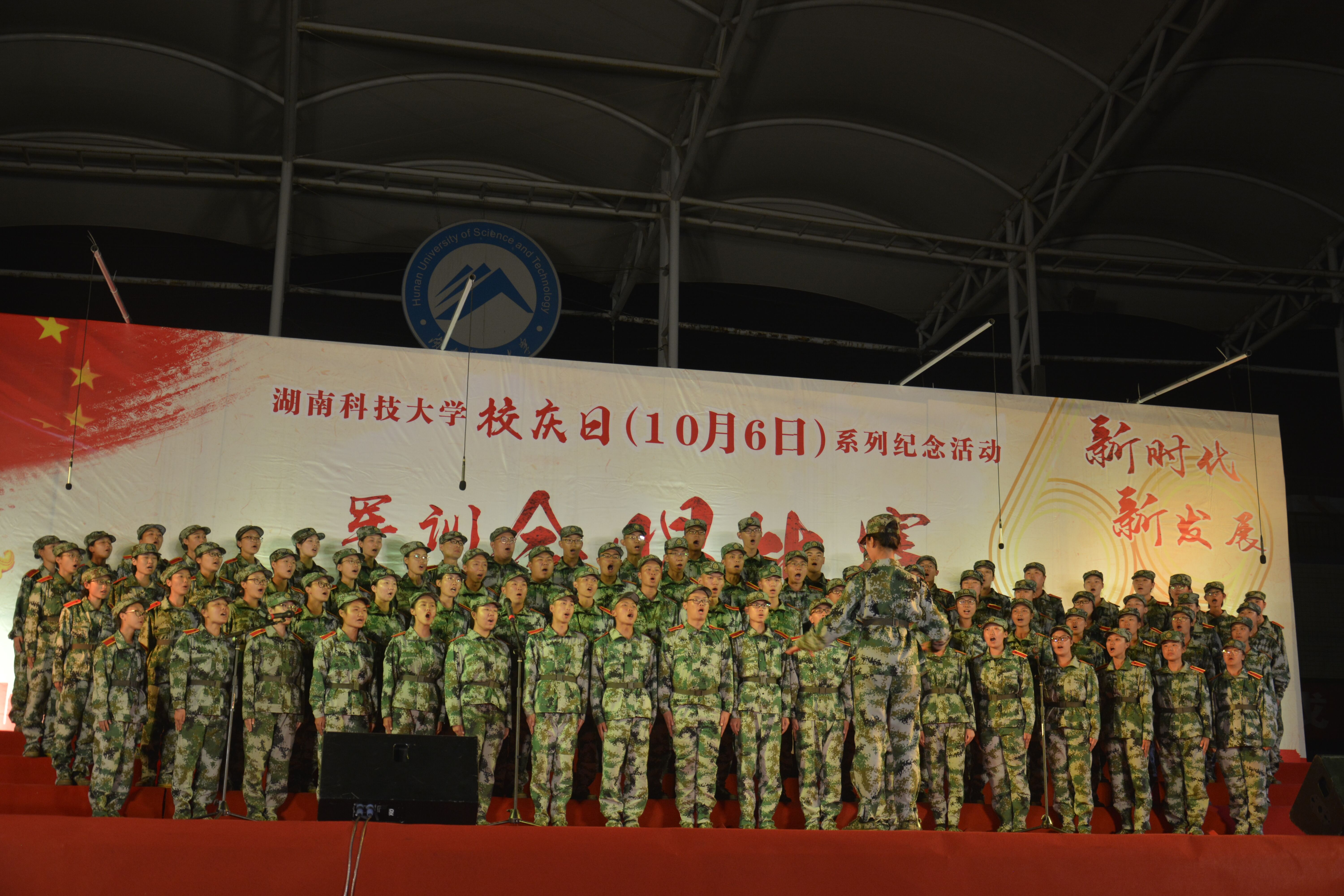 2018年10月6日,是湖南科技大学的69周年校庆日。为了庆祝这个重要的节日,湖南科技大学以“新时代,新发展”为主题的军训合唱比赛在全校师生的关注和所有大一新生的期盼中,正式拉开了帷幕。担任本次比赛的评委分别是:湖南科技大学武装部部长朱理哲,学生工作处处长尹风雨,艺术学院副院长熊晓辉,艺术学院音乐系张想老师、王雯老师、王婷老师。