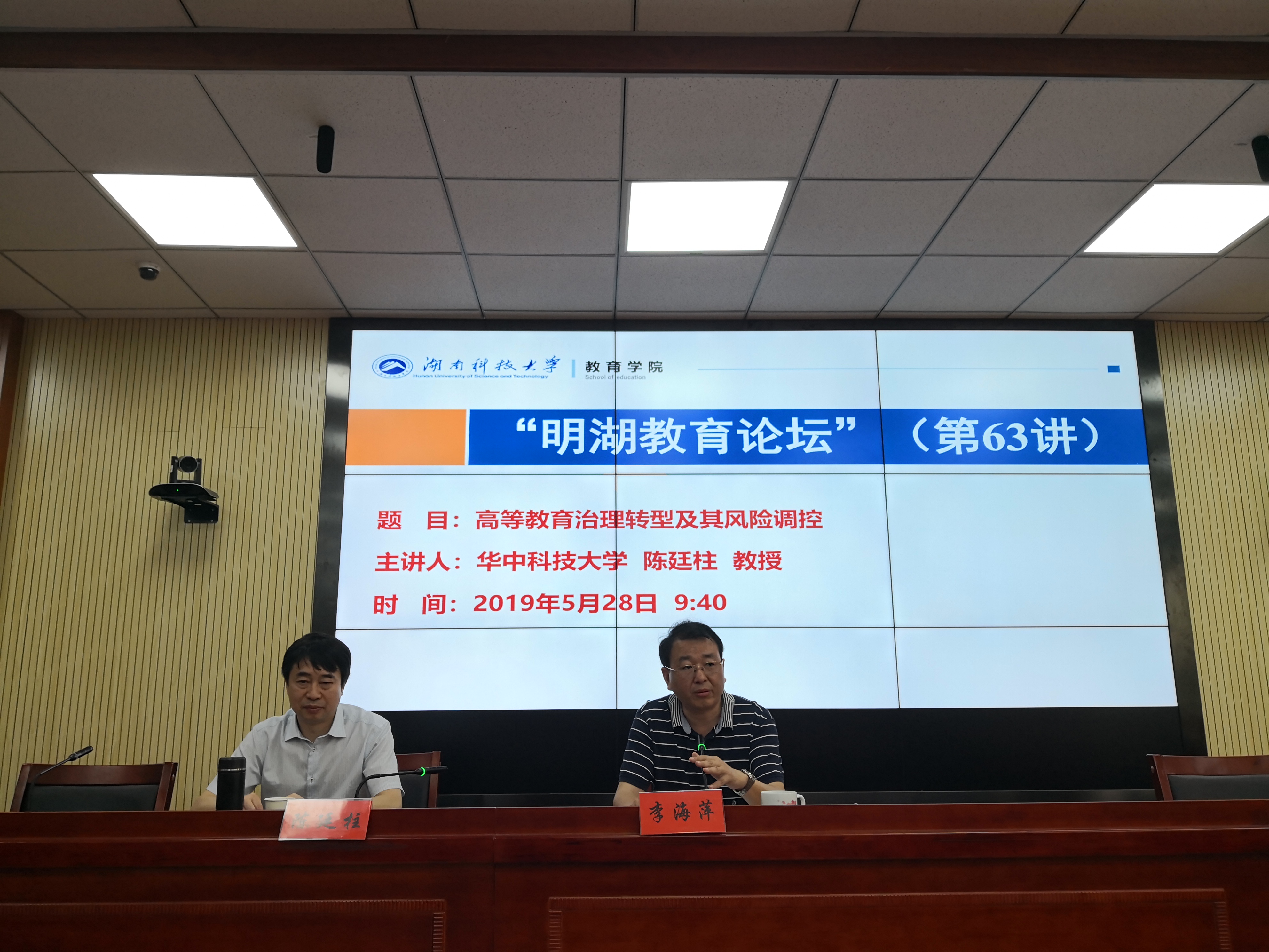 2019年5月28日上午,华中科技大学教育科学研究院院长、博士生导师陈廷柱教授做客“明湖教育论坛”,为我院师生带来题为“项目治教:高等教育治理转型及其风险控制”的学术报告。报告会由教育学院院长李海萍主持。