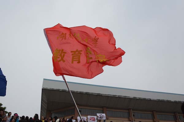 湖南科技大学2013年秋季运动会于10月17日正式拉开序幕,我院全体师生共赴田径场,参加这一盛事。阴雨天气并没有削减大家的热情,“教育不红,天理不容”的口号伴着呐喊声,此起彼伏。