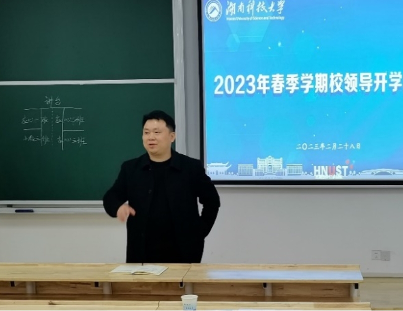 本次会议分为两个阶段。第一阶段会议由廖湘岳主持。全体师生共同聆听了唐亚阳关于“做一名独立思考、理性行动的科大人”的开学第一课。他带领大家回顾了本次寒假里种种的不易,赞扬了一批于困境中仍能积极投入公益行动,服务社会的优秀学生,点赞了学校后勤保障人员的对岗位的坚守与热爱。唐亚阳表示,2022年是国家发展过程中极为重要的一年,也是湖南科技大学发展史上极为重要的一年。他寄语全体学生要脚踏实地,做一个独立思考,理性行动的科大人。