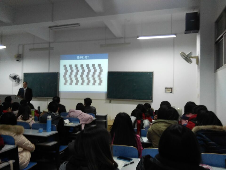 接着,白学军教授从呼格吉勒图案和河南赵作海案引入,提出眼见是否为实的疑问。白教授展示出几张经典的易产生错觉的图片,现场爆发出一阵阵唏嘘之声,看来,眼见真不一定为实啊。又通过8名学生分裂成几部分这一案例,从“对目击证人记忆研究——目击证人的记忆是否能重建”这一事例,证明了人的记忆并不一定可靠,目击证人的记忆可以重建,因此从心理学的角度来讲,并不能完全信任目击证人的说辞。