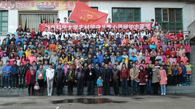 应娄底涟源市教育局、塘湾中学、以及涟源籍爱心人士的邀请,2013年11月24日,在教育学院党委副书记王伟清教授的带领下,我院黄娟娟、谢盈盈等5名研究生和40名本科生志愿者去往涟源市塘湾中学,对300多名的留守、半留守儿童,进行了为期一天心灵呵护志愿活动。