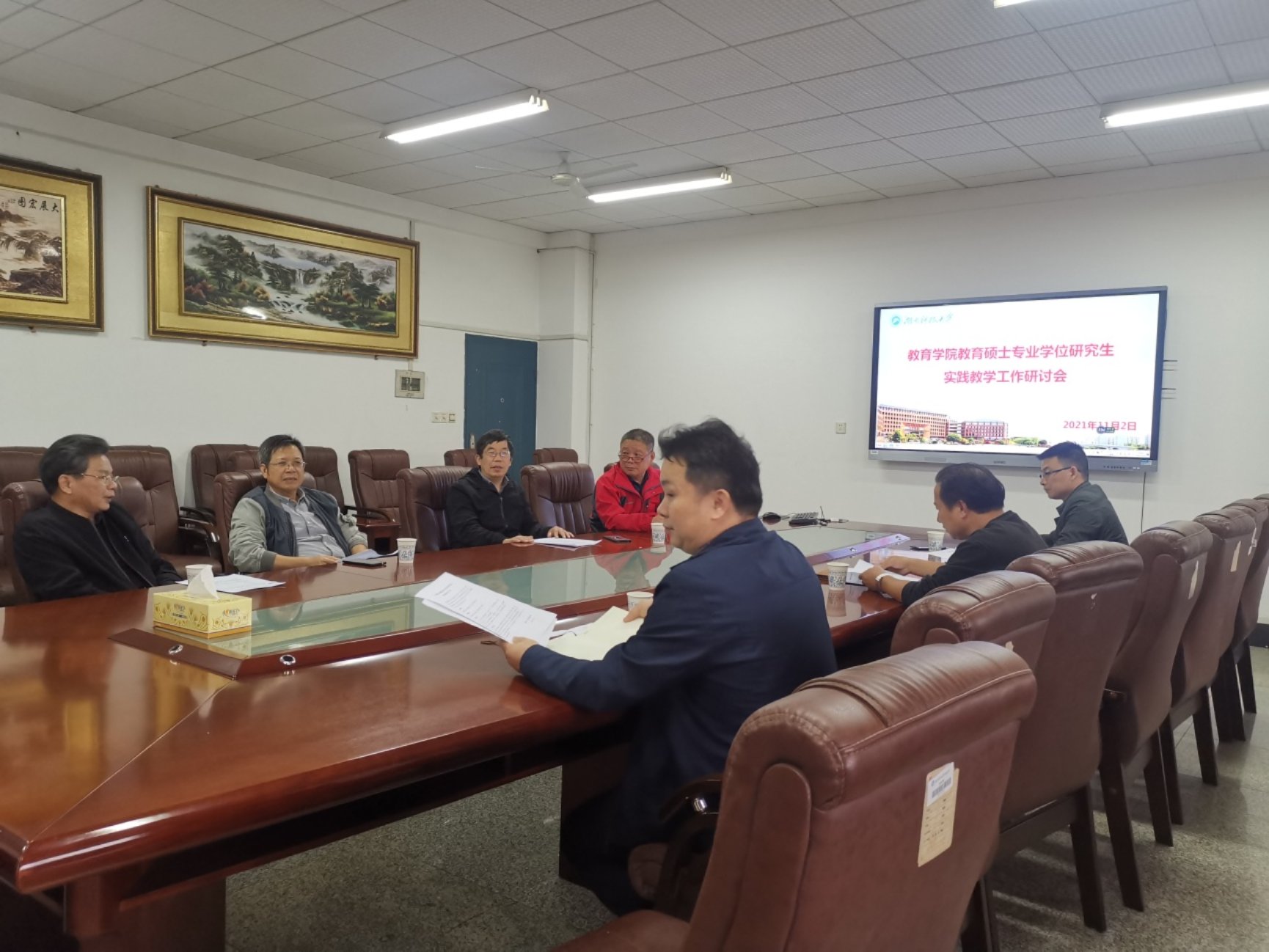 11月2日下午,教育学院教育硕士专业学位研究生实践教学研讨会在第八教学楼208会议室举行。学院党委书记李炳煌、副院长谭千保、各专业领域负责人、研究生办全体工作人员出席,会议由谭千保主持。