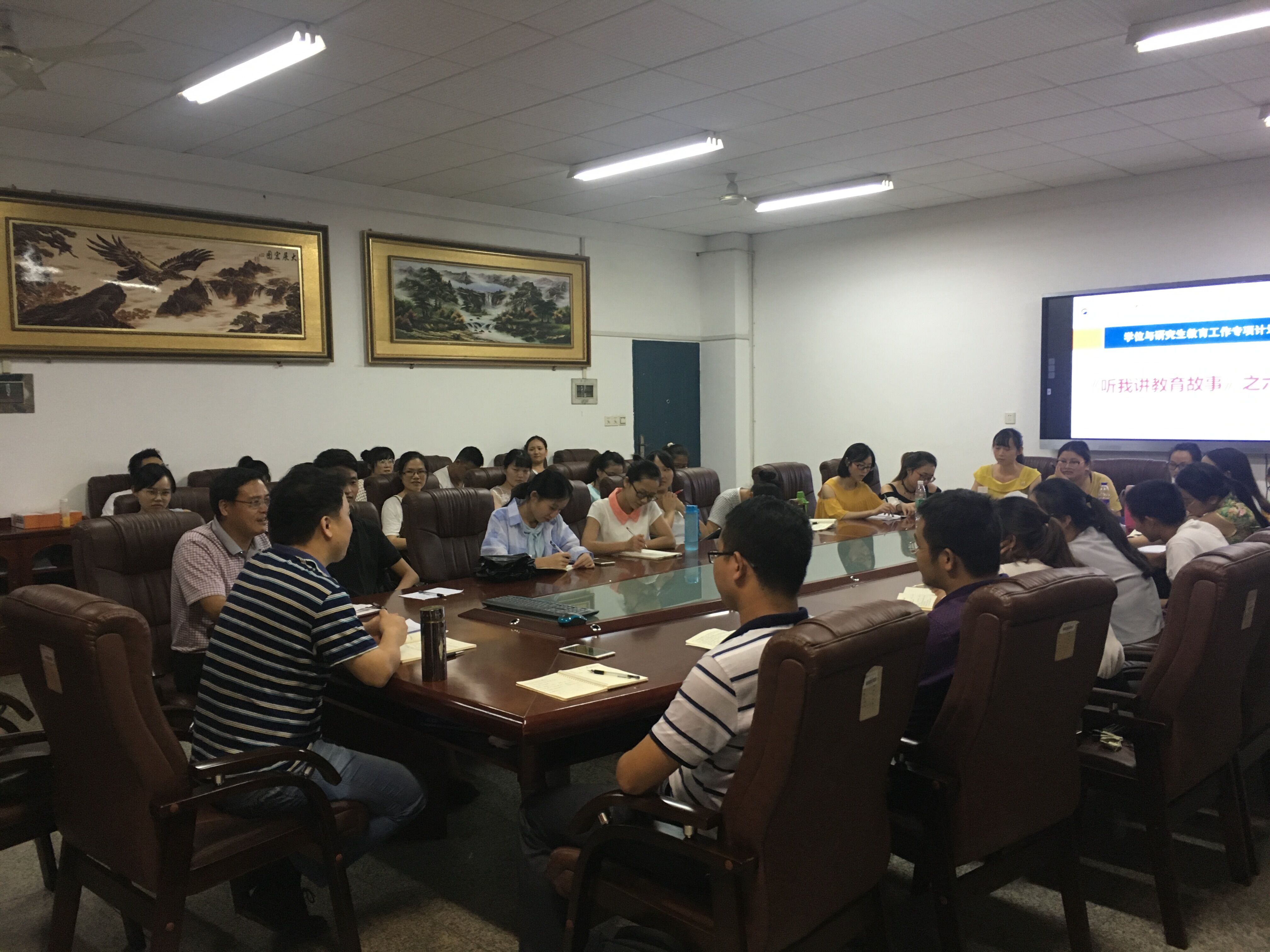 前两场交流会取得较好效果,在同学们的殷切期盼中,7月28日晚,迎来了第三场交流会,本次活动在八教203举行。非全日制4名教育硕士向在场师生分享了自己的教育故事。2017级硕师计划、学科教学(思政)、学科教学(数学)等专业领域的教育硕士参加交流会。交流会由教育学院副院长谭千保主持。